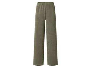 esmara® Spodnie damskie o wyglądzie sztruksu Opis produktu Wyprodukowano z materiałów pochodzących z recyklingu Z elastycznym pasem Szerokie nogawki ze standardową wysokością stanu Optymalne dopasowanie i stabilność kształtu dzięki zawartości włókien wysokogatunkowego elastanu Lycra® Cechy produktu tabletd Kolory: beżowy, zielony Cechy: elastyczny pas Krój: szerokie nogawki Wysokość stanu: regularny stan Materiał: