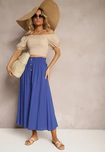 Granatowe Spodnie Palazzo z Wiskozy z Gumką w Pasie Ozdobione Guzikami z Nogawkami 3/4 Efilis