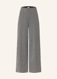 Wysoki stan. Elastyczny pas. Szerokie nogawki. Wzór w paski. Kieszenie z wypustką z tyłu. Zamek błyskawiczny z boku. Pikowane kanty. Teksturowany materiał