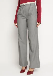 Jasnoszare Spodnie Garniturowe High Waist z Przeszyciami Variola