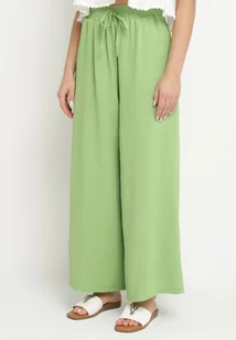 Jasnozielone Szerokie Spodnie Typu Palazzo z Wiązaniem Ulialitia