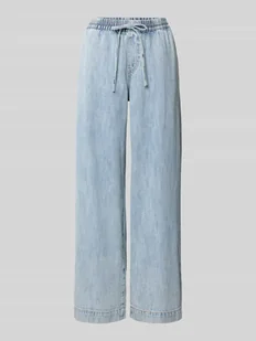 Damskie jeansy wide leg od Pieces;Model „Geggo”;Wygląd:denim;Krój: szerokie nogawki;Wysokość pasa: wysoki stan;Detale: wiązany pasek;Zapięcie: tunel;Kieszenie: 5 kieszeni;Materiał: czysta bawełna
