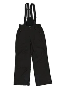 Spodnie narciarskie w kolorze czarnym - wodoszczelność - oddychalność - wiatroszczelność - szelki: regulowane, odpinane - szlufki na pasek: tak - zapięcie: zatrzask, haftka i zamek błyskawiczny - zasuwane kieszenie boczne: 2 - zakończenia nogawek: