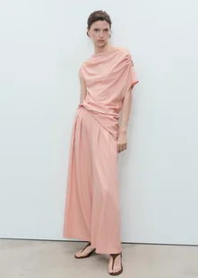 MANGO - Spodnie palazzo z zakładkami różowy - S - Kobieta