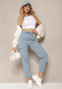Niebieskie Bawełniane Spodnie z Gumką w Talii w Sportowym Stylu Cargo Lofriena