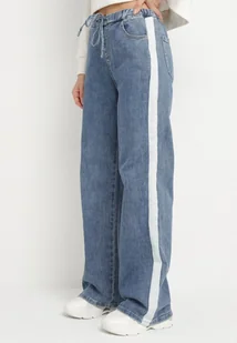 Niebieskie Jeansy o Szerokim Kroju z Gumką w Pasie i Lampasami Nusaria
