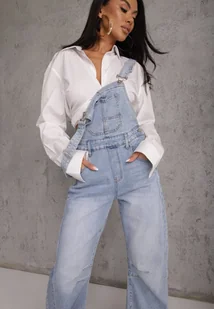 Niebieskie Jeansy Ogrodniczki z Nogawką Balloon z Bawełną Vimalliene