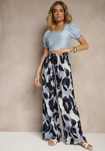 Niebieskie Szerokie Spodnie High Waist z Wiskozą w Panterkowy Wzór Zeviera