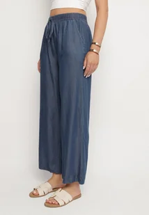 Niebieskie Szerokie Spodnie z Bawełny Ozdobione Wiązaniem Evipoli