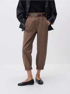 Reserved - Jeansy paperbag - brązowy