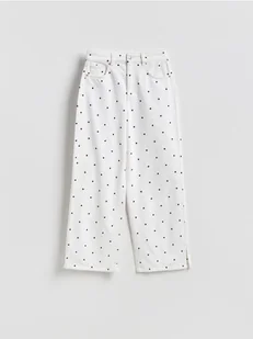 Reserved - Jeansy wide leg w groszki - biały