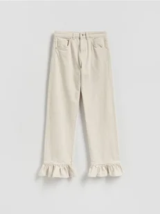 Reserved - Jeansy wide leg z falbankami - kremowy