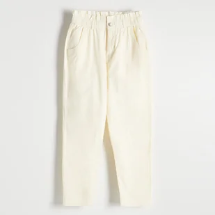 Reserved - Spodnie paperbag - kremowy