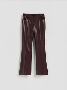 Spodnie o kroju flare, wykonane z imitacji skóry.