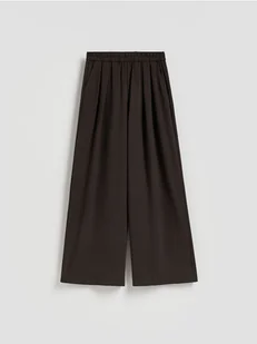 Spodnie o swobodnym kroju, wykonane z gładkiej tkaniny.