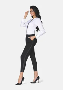 Eleganckie spodnie o długości 7/8 z lampasem z eko-skóry. Grubość: 200 DEN. Materiał KREPA jest w pełni kryjący , elastyczny , modelujący sylwetkę. Materiał ...