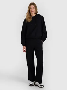 Damskie spodnie dresowe 4F z szerokimi nogawkami – oversize i komfort na co dzień Damskie spodnie dresowe 4F to wygodny element garderoby zaprojektowany z myślą o codziennych stylizacjach casualowych i sportowych. Sprawdzą się zarówno na co dzień, jak i przed lub po treningu, gdy liczy się swoboda i komfort noszenia. Krój oversize luźno układa się na sylwetce i zwiększa swobodę ruchów, a szerokie nogawki podkreślają nowoczesny styl oraz zapewniają wygodę podczas aktywności. Długa nogawka oraz wysoki stan sprzyjają komfortowemu dopasowaniu. Materiał 100% bawełna w połączeniu ze strukturalną dzianiną o krepowanej fakturze zapewnia miękkość, dobrą wentylację oraz oryginalny wygląd.