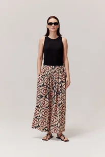 Styl: Wyrazisty, artystyczny styl, który podkreśli Twoją indywidualność. Szyte w Polsce. Skład: 100% bawełna Wymiary produktu dla rozmiaru 34: Długość całkowita - 95 cm Obwód pasa - 68 cm (guma) Obwód bioder - 110 cm Każdy kolejny rozmiar zwiększa się o 4 cm w obwodach (nie dotyczy długości całkowitej). Rozmiar: 34, 36, 38, 40, 42