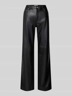 Spodnie z imitacji skóry damskie Only;Model ‘Kiri’;Efekt: jednolity kolor, imitacja skóry ;Krój: Długa nogawka;Aplikacja: Nity;Detale: Szlufki;Zapięcie: Zapięcie na guzik i kryty zamek błyskawiczny;Kieszenie: 5 kieszeni