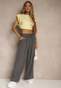 Szare Spodnie z Prostą Nogawką i Kieszeniami oraz Sznurkiem w Talii Qulai