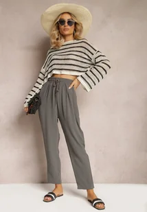 Szare Spodnie o Luźnym Fasonie ze Sznurkiem i Gumką w Talii Enivea