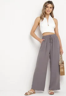 Szare Spodnie z Prostą Nogawką i Kieszeniami oraz Sznurkiem w Talii Qulai