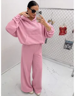 Szerokie spodnie dresowe z bawełny MILANO - pudrowy róż Te spodnie dresowe z szerokimi nogawkami to idealne połączenie wygody i modnego, miejskiego charakteru. Fason wide leg pięknie wydłuża sylwetkę i nadaje stylizacji swobodnego, nowoczesnego wyrazu. Wykonane z wysokiej jakości bawełny, są miękkie, przyjemne w dotyku i zapewniają maksymalny luz i komfort przez cały dzień. Szeroka guma w pasie doskonale dopasowuje się do talii i podkreśla proporcje, nie powodując ucisku. Praktyczne kieszenie dodają funkcjonalności i podkreślają sportowy styl modelu.