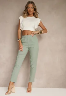 Zielone Spodnie z Lnem o Klasycznym Kroju z Gumką w Talii Filarse