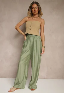 Zielone Spodnie Palazzo High Waist z Szeroką Nogawką i Gumką w Talii Jenarielis