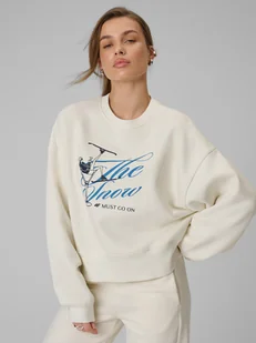 4F Bluza dresowa loose bez kaptura damska - beżowa XS