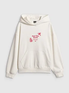 Ta bluza dresowa wykonana z bawełnianej dzianiny zapewnia miękkość i przyjemną strukturę materiału, która sprawdza się w codziennym użytkowaniu. Zintegrowany kaptur stanowi dodatkową osłonę, a kieszeń typu kangurka oferuje praktyczne miejsce na dłonie lub drobiazgi. Luźny krój i długość do bioder zapewniają swobodę ruchu oraz komfort.