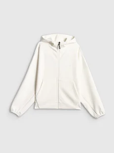4F Bluza dresowa regular z kapturem damska - biała XS