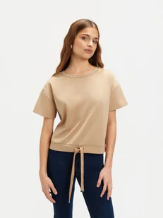 Stylowa beżowa bluza z krótkim rękawem, idealna na każdą okazję. Wykonana z miękkiej mieszanki materiałów zapewnia komfort noszenia i swobodę ruchów. Jej neutralny beżowy kolor doskonale komponuje się z różnymi elementami garderoby, tworząc uniwersalną bazę dla wielu stylizacji. Prosty kroj i elegancki design świetnie sprawdzą się w codziennych, jak i bardziej eleganckich lookach. Dobierz ją do pary swoich ulubionych jeansów lub eleganckiej spódnicy i ciesz się ponadczasowym stylem w każdej sytuacji!