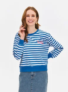 Bluza dostępna w kolorze niebieskim SBL1272BI. Modelka ma 178 cm wzrostu i prezentuje rozmiar 34.