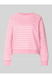 Bluza damska od om Tailor Denim prezentuje efekt: wzór na całej powierzchni w paski oraz krój regular fit, dzięki czemu pozostaje wszechstronna w łączeniu. Dzięki wykończeniu materiału z dzianiny dresowej z mieszanka bawełny powstaje przyjemne uczucie noszenia, które sprawdza się na co dzień. Okrągły dekolt i detal w stylu falban podkreślają swobodny charakter.