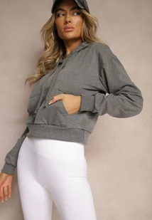 Ciemnoszara Bluza z Kapturem i Bawełną Ozdobiona Ściągaczami Evianae