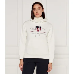 GANT Damska bluza z kapturem REL Archive Shield, Eggshell, standardowa, Eggshell