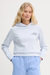 Bluza damska Gant to nierozpinana bluza z kapturem, która sprzyja komfortowi i swobodzie ruchów dla kobiet ceniących casualowy styl. Model w odcieniu niebieskim, wykonany z miękkiej dzianiny bawełnianej, posiada przyjemne w dotyku wnętrze i subtelne haftowane logo na piersi, doskonale wpisując się w miejskie zestawienia.