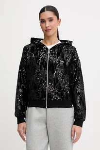 GUESS CZARNA BLUZA DAMSKA Z KAPTUREM I CEKINAMI NA PRZODZIE L GXA