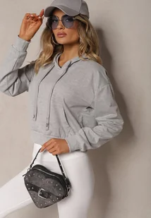 Jasnoszara Bluza z Kapturem i Bawełną Ozdobiona Ściągaczami Evianae