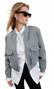 TRENDYOL SZARA BLUZA BOMBER Z KIESZENIAMI I ŚCIĄGACZAMI 36 5AA