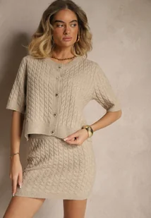 Beżowy Kardigan z Wełną i Ozdobnymi Guzikami i Tłoczeniem Halanira