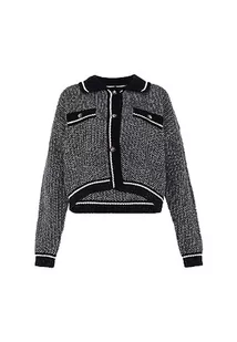 caspio Damski kardigan w kontrastowym kolorze z kołnierzem z odwróconym akrylem czarno-biały, rozmiar M/L, czarny biały, M