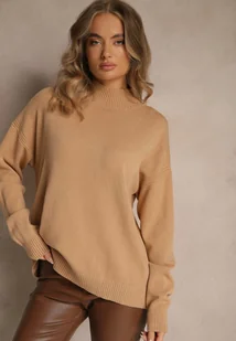 Ciemnobeżowy Golf z Metalicznymi Guzikami Aderlia