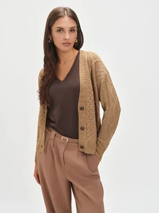 Ciemnobeżowy kardigan z warkoczowym splotem