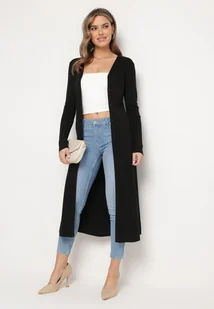 Czarny Długi Klasyczny Kardigan Zapinany na Guziki Lucete