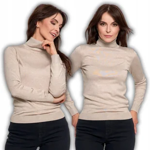 Damski Golf Elegancki Sweter Wiskoza Cienki Elegancki Długi Rękaw Moraj L Beige