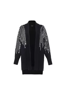 faina Damski kardigan średniej długości ozdobiony cekinami, czarny, rozmiar XL/XXL, czarny, XL