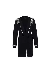 faina Damski kardigan średniej długości z dzianiny perłowej czarny rozmiar M/L, czarny, XL