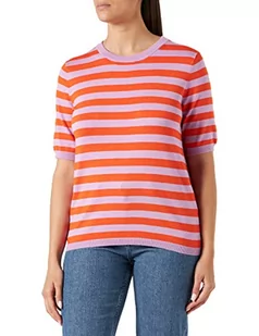 KAFFE damski sweter z krótkim rękawem regularny krój KAmilo krótki rękaw dzianina, Lupine/Orange Stripe, M